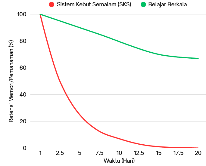 Gambar 2. Grafik Lupa Ebbinghaus vs. Spaced Repetition